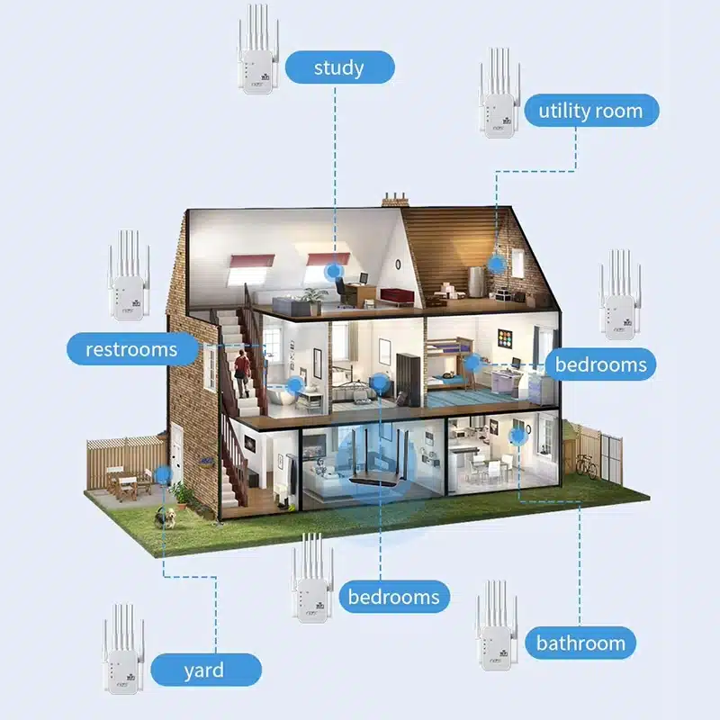 The product is positioned for rooms where WiFi often becomes unstable, such as bedrooms, bathrooms, balconies, and large multi-room layouts. This makes it suitable for practical indoor coverage-extension demand rather than only promotional retail messaging.