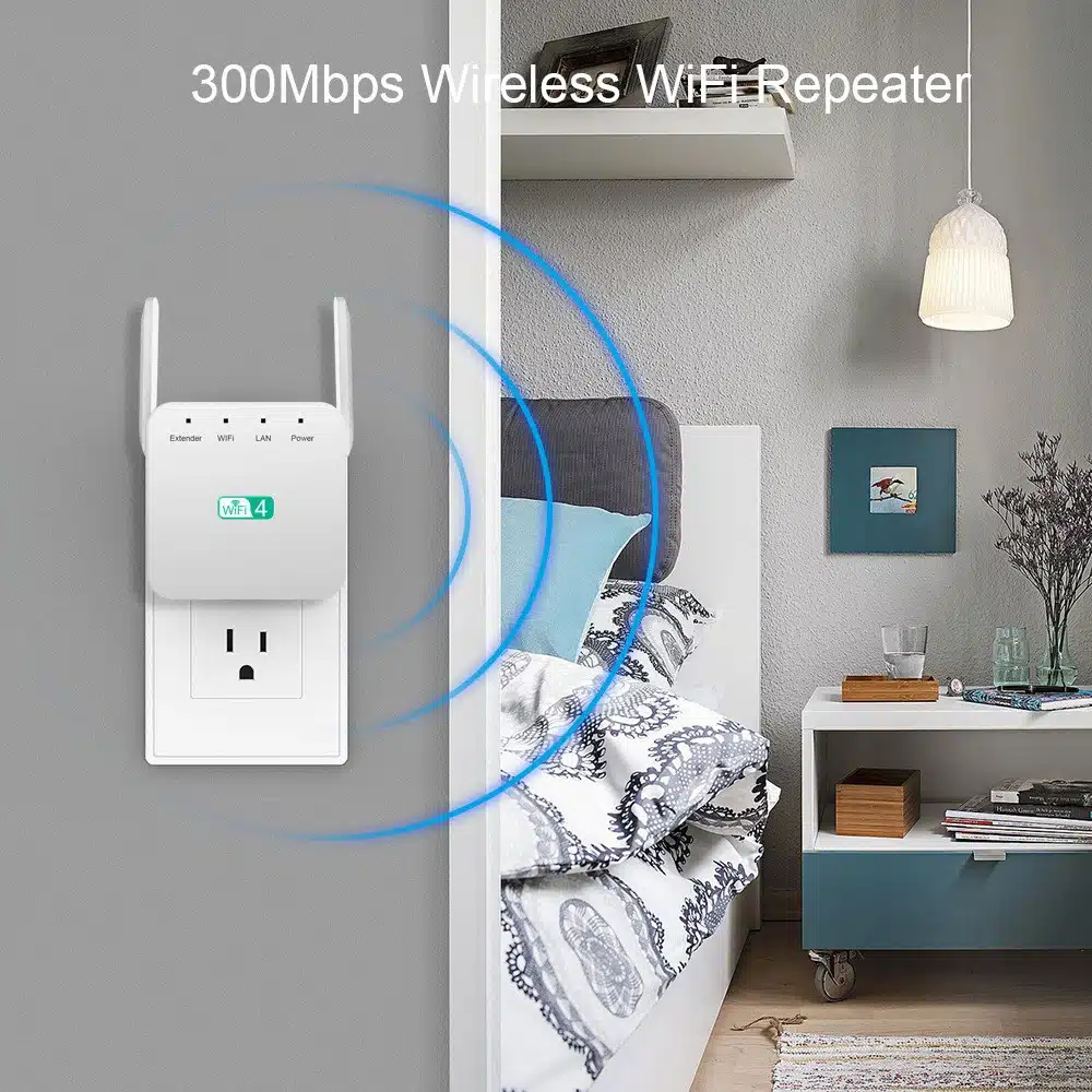 The rated wireless speed is up to 300Mbps. Actual performance depends on router quality, signal source strength, installation position, interference, and end-device capability.